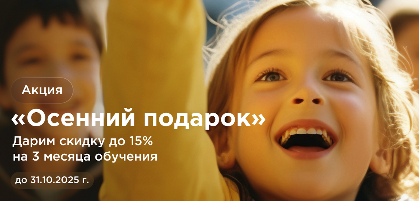 С 6 по 31 октября 2025 года заключившие договор на программы “Школьный” или “Ученический”, получат специальную скидку.
