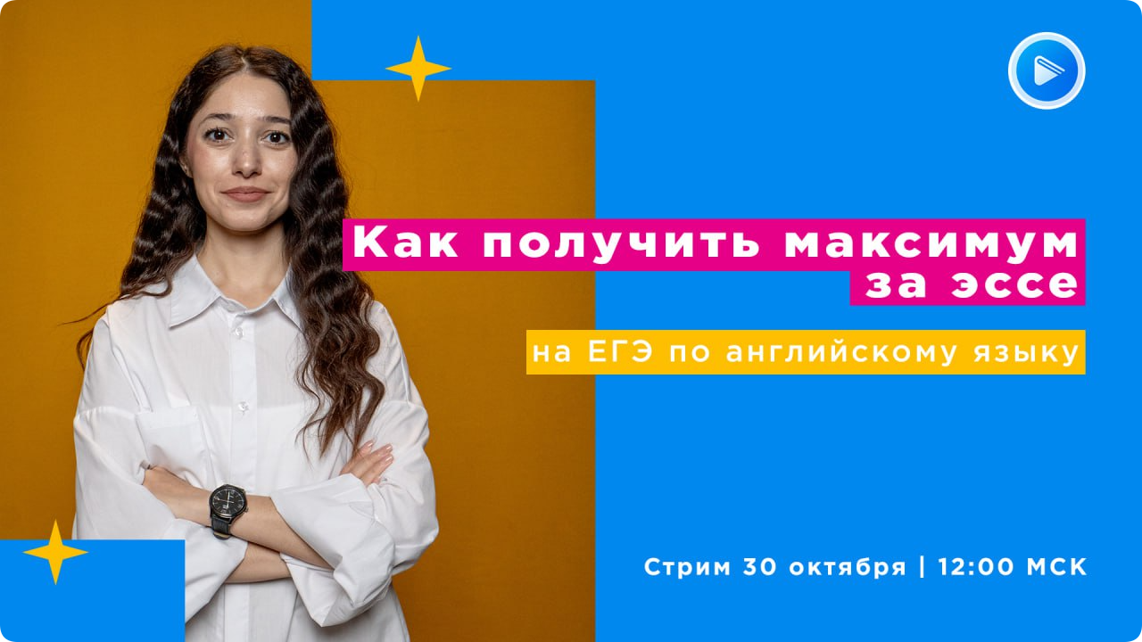 Приглашаем учеников и родителей 30.10.2025 в 12:00 по Москве на стрим (открытый урок) “Как получить максимум за эссе на ЕГЭ по английскому языку”.