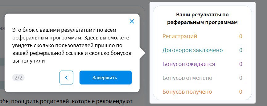 - После того как родитель перейдёт по вашей реферальной ссылке, зарегистрируется на сайте, подпишет договор и оплатит обучение, у вас автоматически появятся бонусы.
