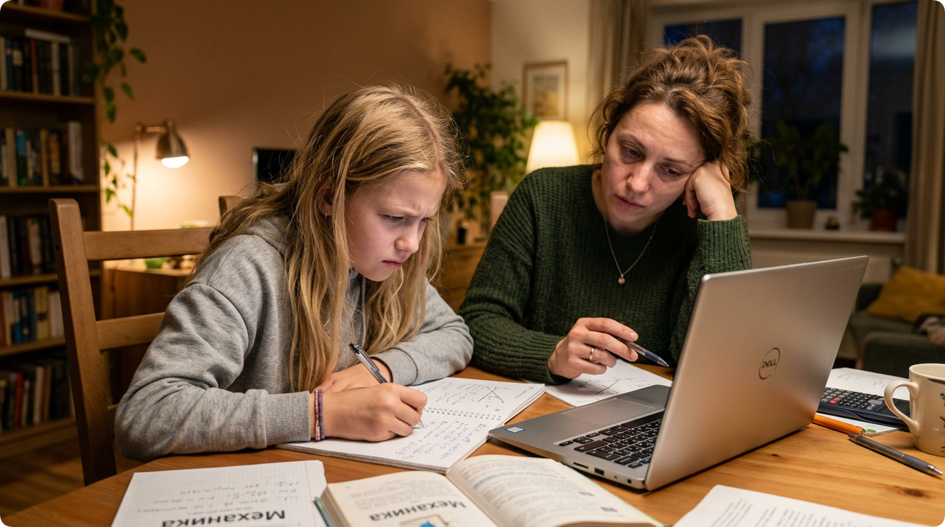 Если родители обнаруживают, что они сами превратились в «домашних учителей», проводят часы за учебниками, повышают голос на ребёнка из-за невыполненного упражнения — это явный сигнал, что нужна внешняя помощь.