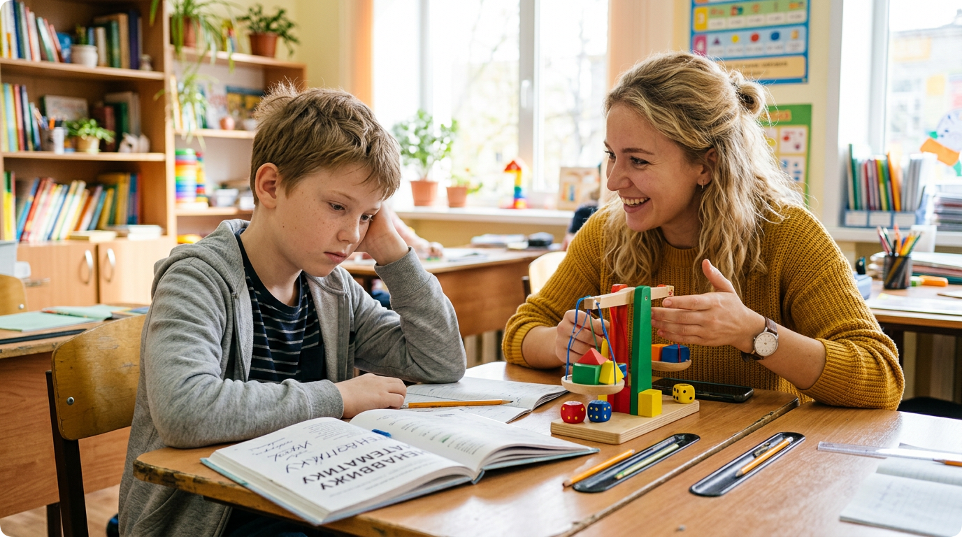 Если снижение успеваемости избирательное — по математике или физике при хороших гуманитарных результатах — репетитор может быть особенно эффективен. Он подберёт подход, который работает именно для этого ребёнка. Исследования Education Endowment Foundation показывают: «Высококачественное индивидуальное обучение, выровненное с классной программой, может привести до пяти месяцев дополнительного прогресса» (EEF, Teaching and Learning Toolkit).