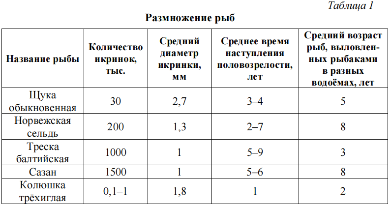 Пользуясь таблицей 1 «Размножение рыб» и знаниями из школьного курса биологии, ответьте на следующие вопросы.