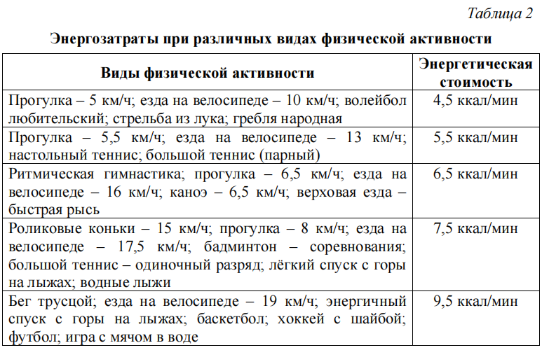 1) Баскетбол относится к активности с энергозатратами 9,5 ккал/мин (таблица 2). Тренировка длилась 1 час 40 минут = 100 минут. Энергозатраты: 9,5 ккал/мин × 100 мин = 950 ккал.