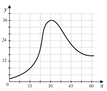 Изучите график зависимости скорости размножения организма от времени (по оси х отложено время (дни), а по оси у – число образовавшихся особей на 1 см³). Какие два из приведённых ниже описаний наиболее точно характеризуют данную зависимость в указанном интервале времени?