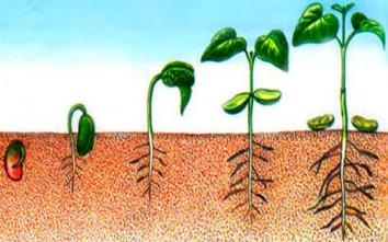 На рисунке изображён проросток фасоли в разные периоды времени. Какое ОБЩЕЕ свойство живых систем иллюстрирует природное явление, происходящее с растением?