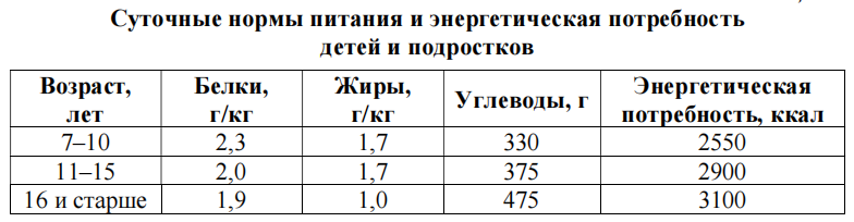 2) Суточная потребность в белках для 11 лет: 2,0 г/кг. При массе 37 кг: 2,0 × 37 = 74 г. В обеде содержание белков:
