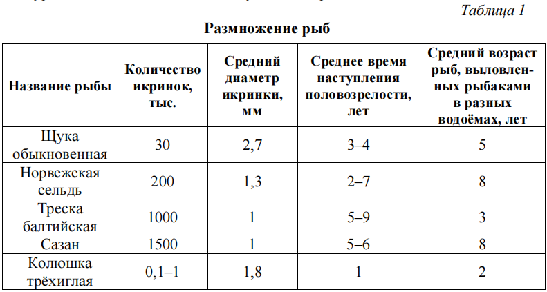 Пользуясь таблицей 1 «Размножение рыб», а также используя знания из курса биологии, ответьте на следующие вопросы.