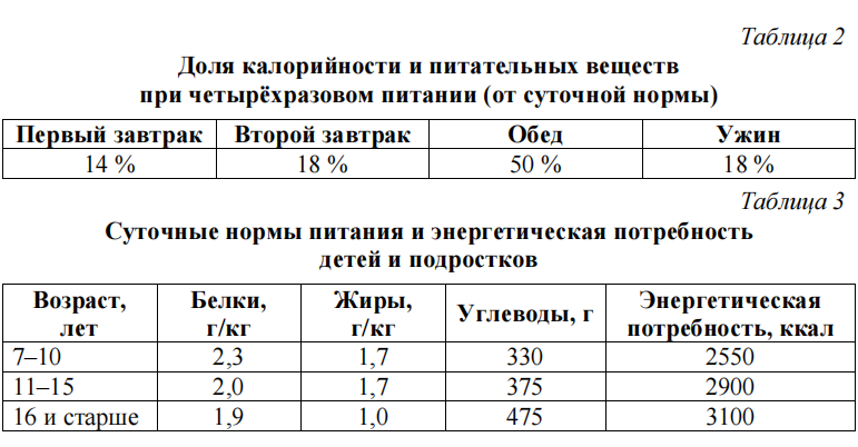 Суточная норма углеводов для 16 лет – 475 г (таблица 3). Норма второго завтрака (18%): 475 × 0,18 = 85,5 г.
