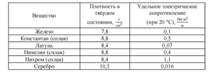 5) При равной площади поперечного сечения проводник из константана длиной 5 м имеет такое же электрическое сопротивление, как и проводник из никелина длиной 4 м.