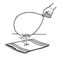 Рассыпанные на салфетке крупинки молотого чёрного перца можно собрать, если поднести к ним надутый воздушный шарик, предварительно потёртый о шерстяной шарф (см. рисунок). Какое явление объясняет притяжение крупинок перца к шарику?