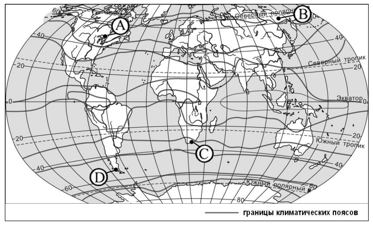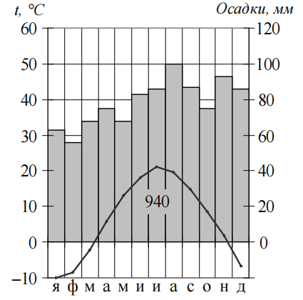 Проанализируйте климатограмму и определите, какой буквой на карте обозначен пункт, характеристики климата которого отражены в климатограмме.