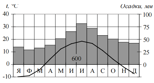 Проанализируйте климатограмму и определите, какой буквой на карте обозначен пункт, характеристики климата которого отражены в климатограмме.