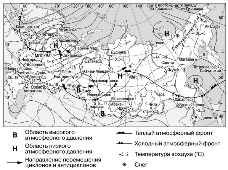 1) Средняя температура воздуха в январе в Москве составляет –10 °С.
