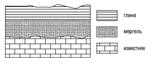 Во время экскурсии учащиеся сделали схематическую зарисовку залегания горных пород на обрыве у берега реки. Расположите показанные на рисунке слои горных пород в порядке увеличения их возраста (от самого молодого до самого древнего). Запишите в таблицу получившуюся последовательность цифр.