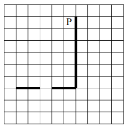 На бесконечном поле есть горизонтальная и вертикальная стены. Правый конец горизонтальной стены соединён с нижним концом вертикальной стены. Длины стен неизвестны. В горизонтальной стене есть ровно один проход, точное место прохода и его ширина неизвестны. Робот находится в клетке, расположенной рядом с вертикальной стеной слева от её верхнего конца.