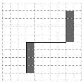 На бесконечном поле имеются две вертикальные стены и одна горизонтальная, соединяющая нижний конец правой и верхний конец левой вертикальных стен. Длины стен неизвестны. Робот находится в клетке, расположенной слева от верхнего края правой вертикальной стены, рядом со стеной.