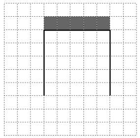 Напишите для Робота алгоритм, закрашивающий все клетки, расположенные выше горизонтальной стены непосредственно над ней. Робот должен закрасить только клетки, удовлетворяющие данному условию. Например, для приведённого выше рисунка Робот должен закрасить следующие клетки (см. рисунок).