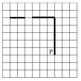 На бесконечном поле есть горизонтальная и вертикальная стены. Правый конец горизонтальной стены соединён с верхним концом вертикальной стены. Длины стен неизвестны. В горизонтальной стене есть ровно один проход, точное место прохода и его ширина неизвестны. Робот находится в клетке, расположенной рядом с вертикальной стеной слева от её нижнего конца.