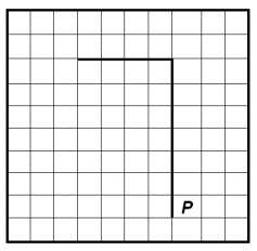 На бесконечном поле имеется вертикальная стена. Длина стены неизвестна. От верхнего конца стены влево отходит горизонтальная стена также неизвестной длины. Робот находится в клетке, расположенной справа от нижнего края вертикальной стены.