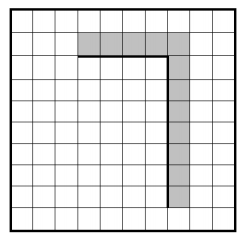 Напишите для Робота алгоритм, закрашивающий все клетки, расположенные правее вертикальной стены, выше горизонтальной стены и угловую клетку. Робот должен закрасить только клетки, удовлетворяющие данному условию. Например, для приведённого выше рисунка Робот должен закрасить следующие клетки (см. рисунок).