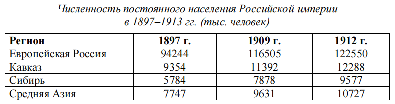 В) Численность населения Средней Азии примерно на 2 млн человек превышала численность населения Сибири в