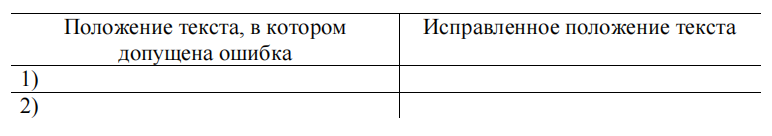 Найдите фактические ошибки и исправьте их. Ответ оформите следующим образом (обязательно заполните обе колонки таблицы).