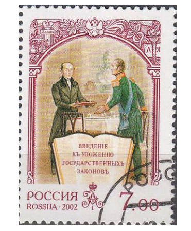 Рассмотрите изображение и выполните задание.Какое событие произошло в правление императора, который подписал документ, указанный на марке?