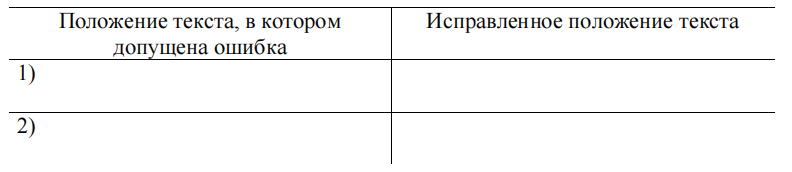 Перед Вами четыре предложения. Два из них являются тезисами (положениями, которые требуется аргументировать). Другие два содержат факты, которые могут послужить для аргументации этих тезисов. Подберите для каждого из тезисов соответствующий факт. Номера соответствующих предложений запишите в таблицу.