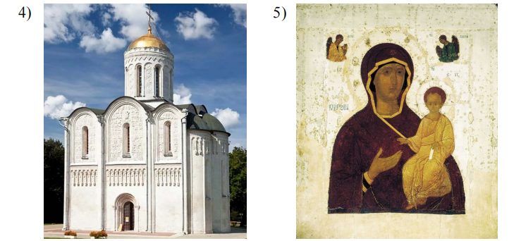 Какие из приведённых памятников культуры были созданы в XII в.? Выберите два памятника культуры и запишите в таблицу цифры, под которыми они указаны.