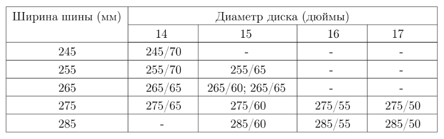 ЗАДАНИЕ 1. Завод допускает установку шин с другими маркировками. В таблице показаны разрешённые размеры шин. Ширина шины (мм) Диаметр диска (дюймы)