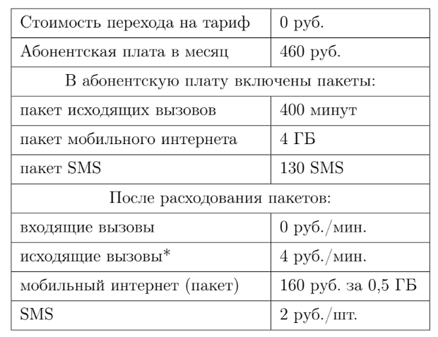 В конце 2019 года оператор связи предложил абоненту перейти на новый тариф, условия которого приведены в таблице.